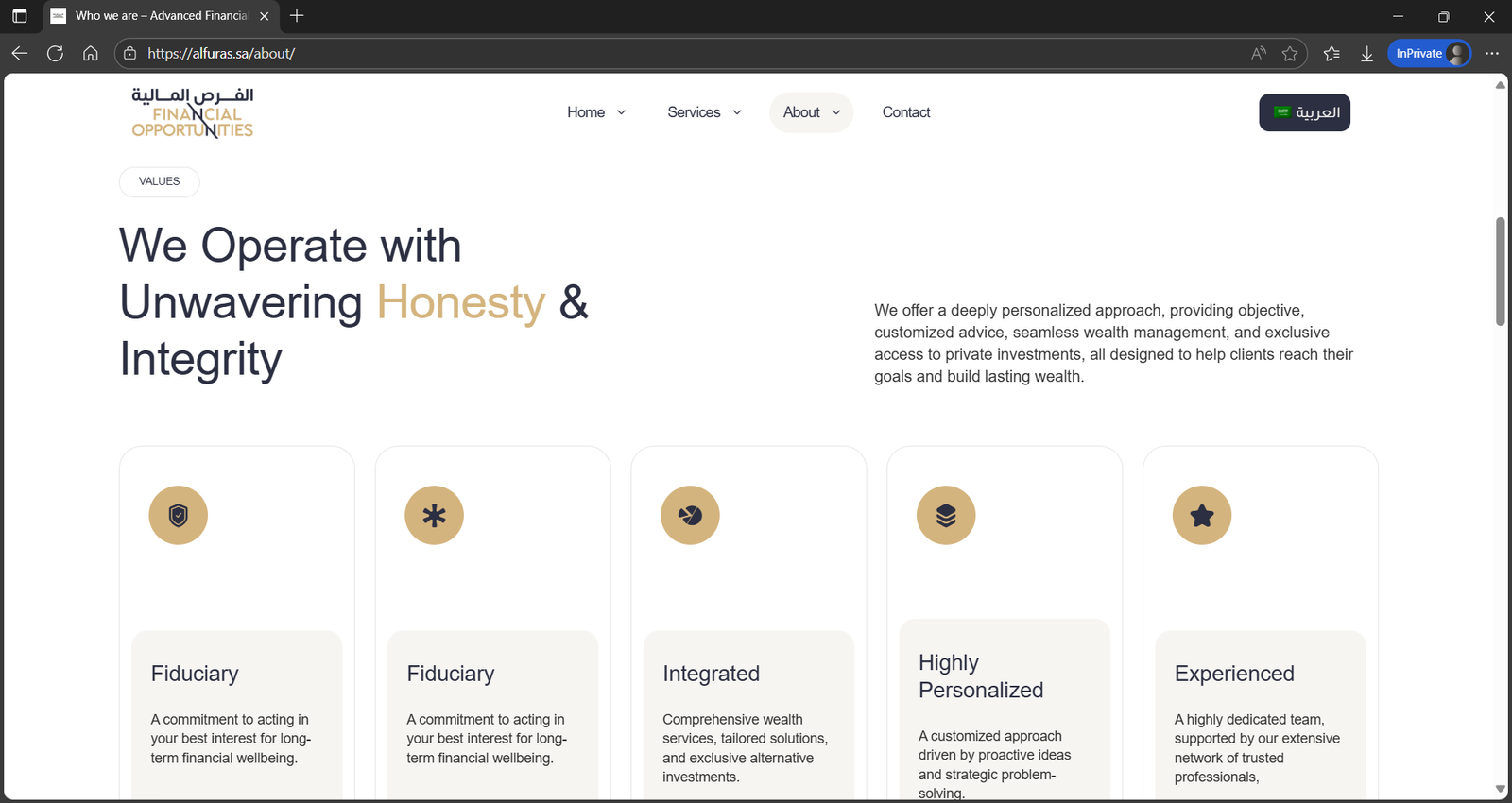 Advanced Financial Opportunities is a Saudi-based investment and financial management firm offering services including financial planning, investment management, and structuring funds.